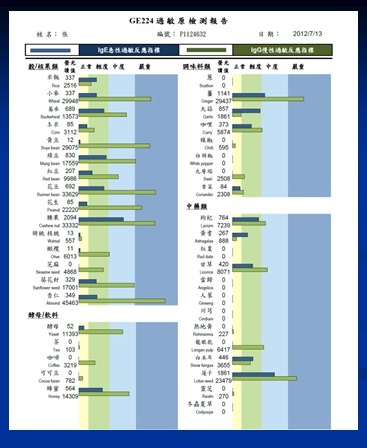 常規性建議患者抽血做食物及環境抗體護照(如以下二圖)。